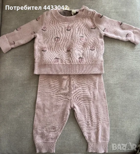Комплектчето не е обличано нито веднъж , плетено,много е приятно на допир . 3-6 месеца .