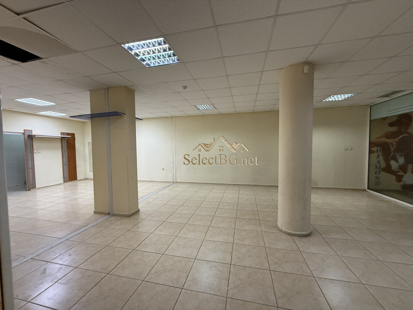 Помещението е с площ 120 кв.м. с високи тавани и голяма стъклена витрина, пространството предлага видимост и допълнителна светлина и простор. Собствен санитарен възел . За комфорт е осигурен климатик-колона .