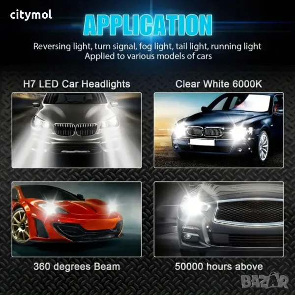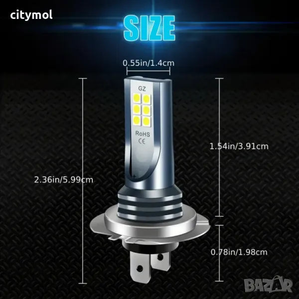 Комплектът съдържа 2 бр LED H7, 55W, 6000K, 9600 lm,.