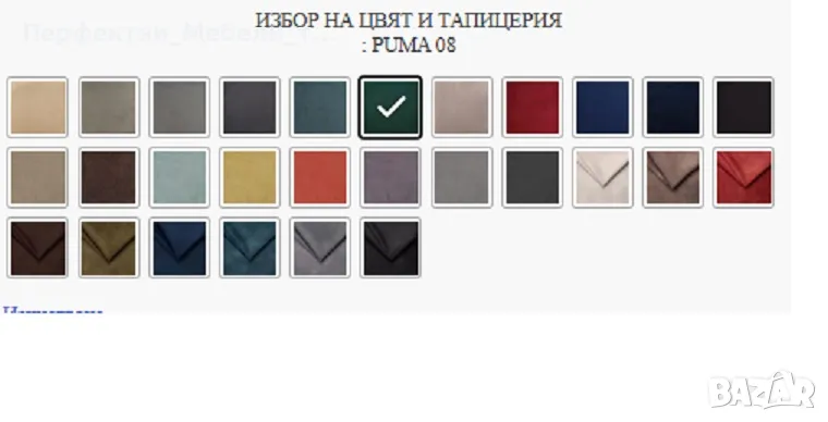 Изцяло тапициран в дамаска SORO, PUMA или PL с избор на цвят.