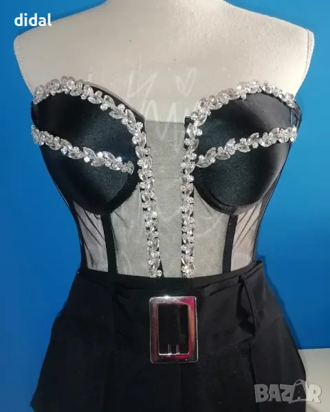 Бутикови сако с пера , корсет с кристали и елегантен панталон