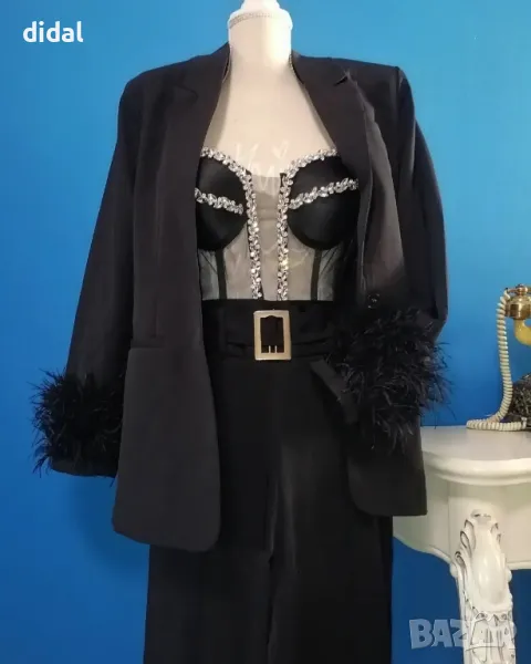 Бутикови сако с пера , корсет с кристали и елегантен панталон → Обява 49737760