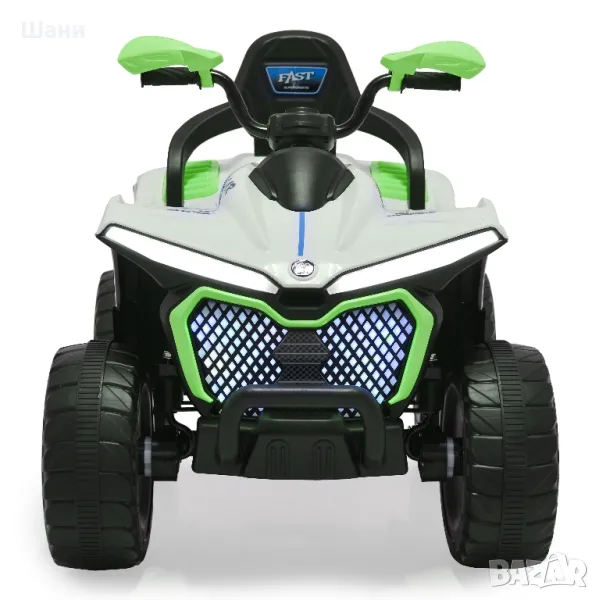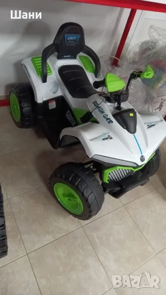 Екипирано е с батерия от 1 * 12V/7Ah, четири задвижващи мотора и пластмасови гуми за по-добро сцепление.
