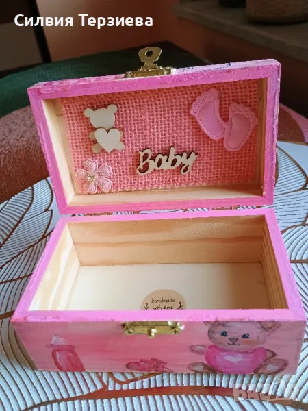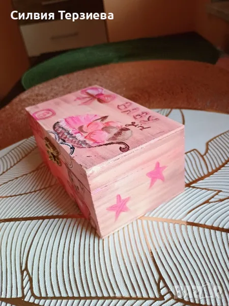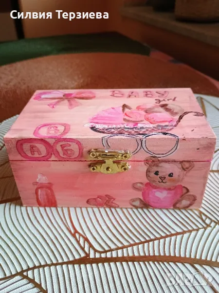 Ръчно изработена дървена кутия за бебе момиче → Обява 49738934