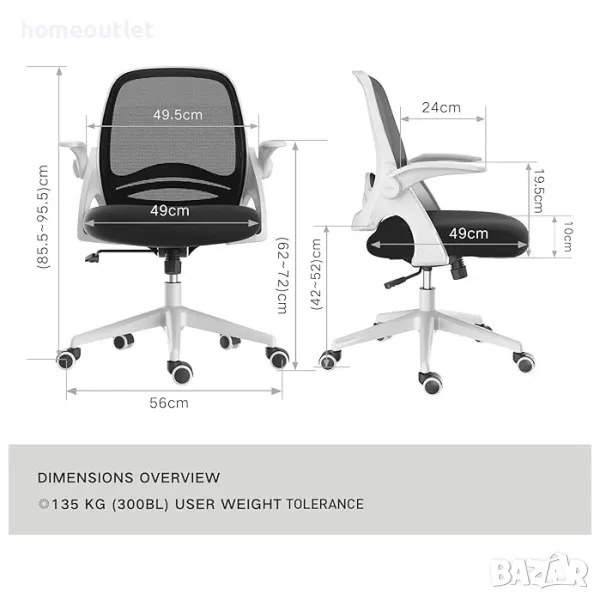Общ размер: 56 см / 49 см / 85,5-95,5 см