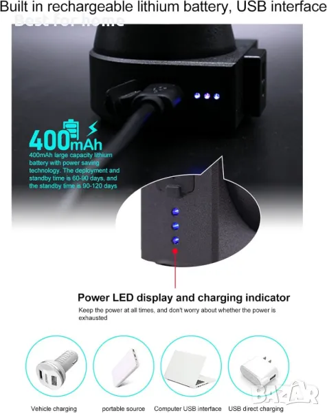 МОЩНА БАТЕРИЯ - С литиева батерия с голям капацитет от 400 mAh звънецът за велосипед предлага ниска консумация на енергия и дълго време в режим на готовност, като гарантира, че остава готов, когато имате нужда от него.