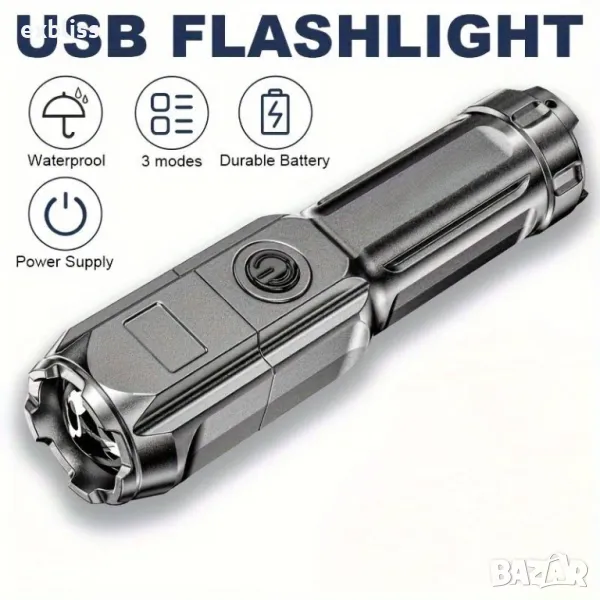 Този мощен фенер с презареждаема батерия и регулируем фокус е идеален за всеки, който търси надежден и универсален източник на светлина.