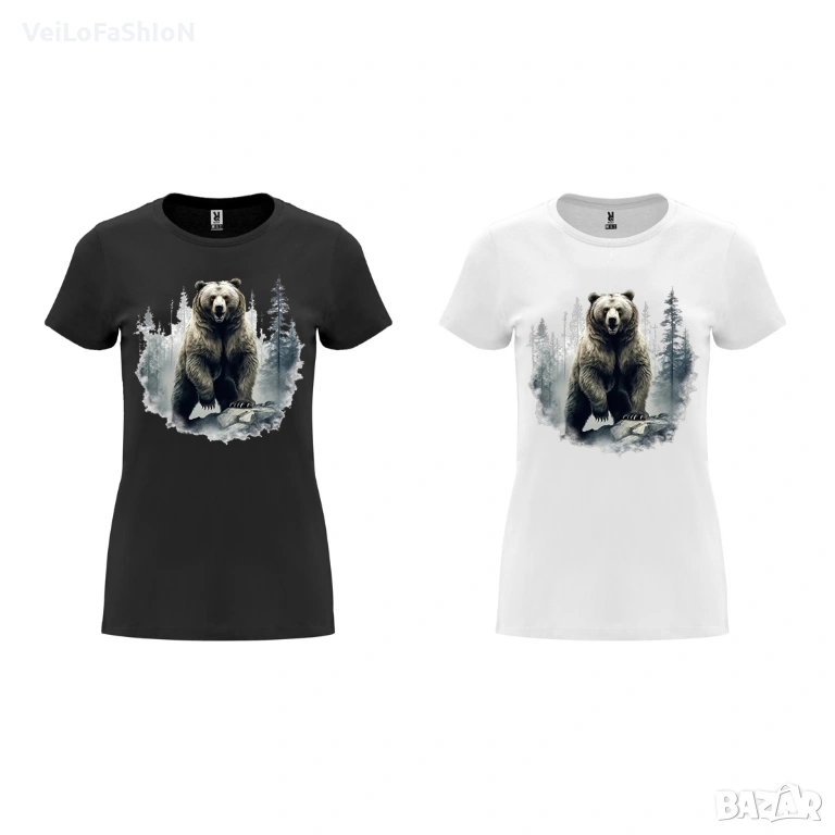 Нова дамска тениска с Мечка, в бял или черен цвят