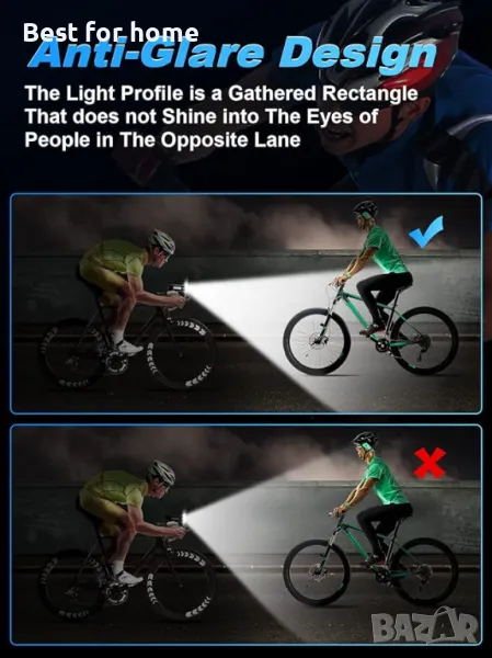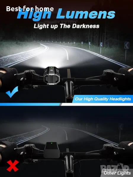 【Висока яркост и защита срещу отблясъци】: Нашите велосипедни светлини осигуряват висока яркост, която незабавно ще подобри вашата видимост и безопасност, ще бъдете шокирани и изумени колко ярки са! Когато карате на тъмно, има широк диапазон от светлина в далечината и наблизо, а яркостта дори ви дава ясна видимост, докато карате. Оптичният дизайн против отблясъци позволява на вас и другите да шофирате безопасно през нощта. Преведено с