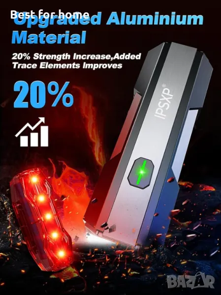 【Военно качество】: Светлината за велосипед е изработена от висококачествена алуминиева сплав, която има отлична устойчивост на удар, разсейване на топлината и устойчивост на корозия, което значително удължава живота на светлината на велосипеда. Алуминиевото тяло също е покрито със слой PC пластмаса за защита на светлината на велосипеда в случай на случайна защита на светлината на велосипеда. Задната светлина на велосипеда също е USB акумулаторна и може да се използва до 50 часа 2,5 часа зареждане.