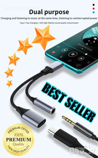 type-c към 3,5 mm поддържа възпроизвеждане на музика и разговори за повечето