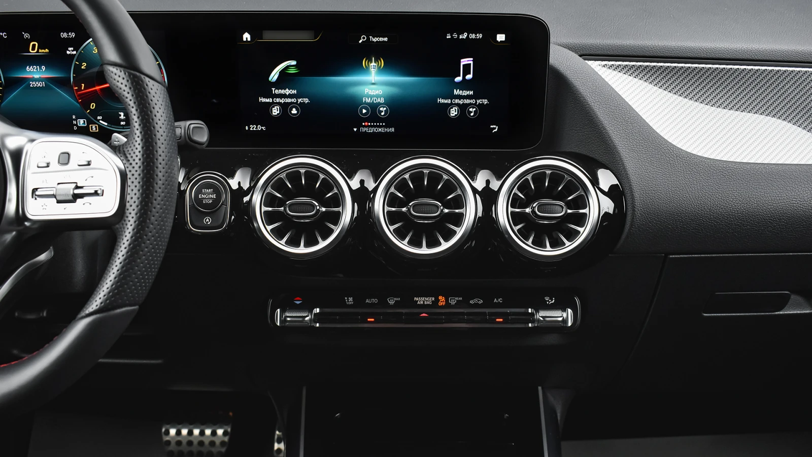 Автосвят ООД - официален представител на Opel и Mazda, предлага на Вашето внимание клиентски автомобил Mercedes-Benz GLA 200 AMG Line 4MATIC Автомобилът е във фабрична гаранция до 12. 03. 2028 година или до 200 000 км. Възможност за встъпване в текущия лизинг или нов лизинг. Допълнителни услуги: - лизинг; - сътрудничество при регистрация; - възможност за обратно изкупуване; - посредничество при застраховане; - посредничество при завеждане на щети при застрахователя. 696U Универсален лак нощно черно 651A Тапицерия комбинация синтетична кожа ARTICO / микрофазер DINAMICA черно 14U Пакет " Смартфон интеграция" 16U Apple CarPlay 17U Android Auto 20U Подготовка за прехвърляне на цифровия ключ 213 Директно управление 218 Камера за движение на заден ход 234 Асистент за мъртвия ъгъл 235 Активен асистент за паркиране вкл. PARKTRONIC 242 Ел. регулируема предна дясна седалка с памет 243 Активен асистент за лентата за движение 252 Централно огледало с автоматично затъмняване при заслепяване 255B MB-Mobilo with DSB and GGD 273 Предупреждение при отваряне на вратите при приближаващ отзад трафик 275 Ел. регулируема седалка на водача с памет 287 Сгъваеми облегалки на задните седалки в отношение 40/20/40 294 Въздушни възглавници за коленете 2U1 AIRPANEL от 2 части (зад радиаторната решетка и зад долната част на бронята) 310 Двойна поставка за чаши на средната конзола 33U Дистанционни услуги PLUS 345 Сензор за дъжд 351 Mercedes-Benz аварийно повикване 355 MBUX с разширени функции 362 Комуникационен модул (LTE) за услугите Mercedes me connect 367 Live Traffic capability - подготовка за информация за трафика в реално време 426 Автоматична скоростна кутия 8G-DCT 430 OFFROAD технически пакет 431 Планки за превключване на предавките от волана, галванизирани 440 Автопилот вкл. регулируем ограничител на скоростта 446 Тъчпад на средната конзола 458 Дигитално инструментално табло с диагонал на екрана 10, 25 (26, 04 см) 475 Система за следене налягането на гумите 500 Ел. сгъваеми външни огледала 504 Асистент за ограничението на скоростта 51U Таван в плат, черен 537 Цифров радио-тунер (DAB) 543 Двойни сенници за предните места 580 Автоматична климатична инсталация THERMATIC с една температурна зона 628 Адаптивен асистент за дълги светлини PLUS 642 Фарове MULTIBEAM LED 677 Комфортно окачване с понижен пътен просвет 720 Надлъжни релси на покрива в черно 73B Отделение за вещи на централната конзола с щора 772 Линия AMG преден спойлер, странични прагове 840 Подсилено затъмнени задно и странични задни стъкла 859 Мултимедиен дисплей с диагонал 10, 25 (26, 04 см) и Touch-функционалност 873 Ел. отопление на предните седалки 877 Амбиентно осветление 890 Автоматичен капак на багажника 897 Безжично зареждане за мобилни устройства 8B6 Активен асистент за паркиране вкл. PARKTRONIC 8U6 Кормилен асистент при избягваща маневра 8U8 i-Size система за закрепване на детско столче на външните задни места (ISOFIX) 916 Резервоар с обем 51 л 950 Линия AMG B51 TIREFIT система за поправяне спукани гуми на път B59 Програми за шофиране DYNAMIC SELECT H62 Декоративни елементи с карбонова структура L5C Мултифункционален спортен волан в кожа напа P44 Пакет Паркиране с камера за заден ход P49 Пакет Огледала P55 Пакет Нощ RTG Алуминиеви джанти AMG 19'' (48, 3 см), дизайн 5 двойни спици U10 Автоматично деактивиране на фронталната въздушна възглавница за пътника до водача U22 4-посочни лумбални опори за предните седалки U59 Пакет " Комфортни седалки" U62 Пакет " Светлини и видимост" Автомобилът се намира в Автосвят гр. Русе За контакти: 0888 414 107 Борислав Русев - шоурум Р