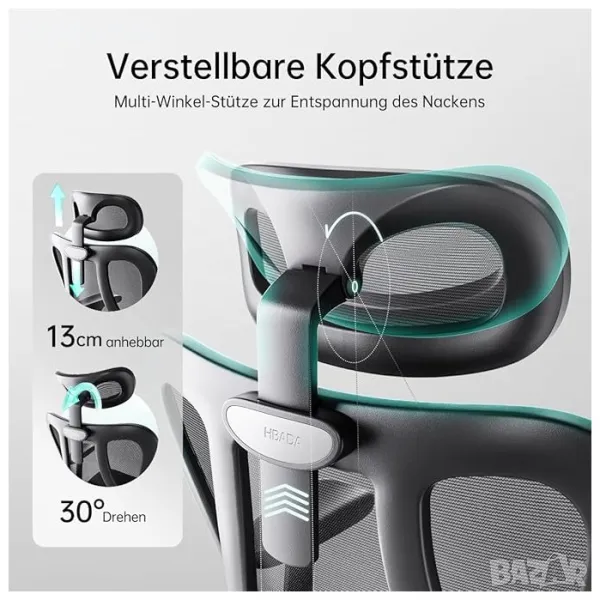 2D облегалката за глава предлага оптимална опора за врата и завъртане на 30°.
