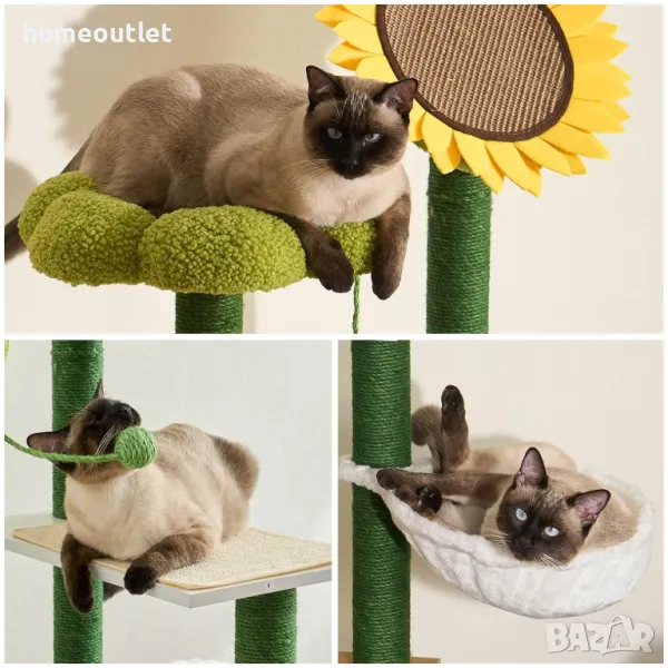 Котешкото дърво на 4 нива предлага различни височини на скок и достатъчно пространство за активност и почивка.