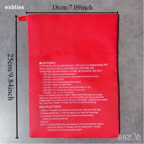 - Лесна за употреба: Просто поставете картофите в торбата и я сложете в микровълновата фурна.