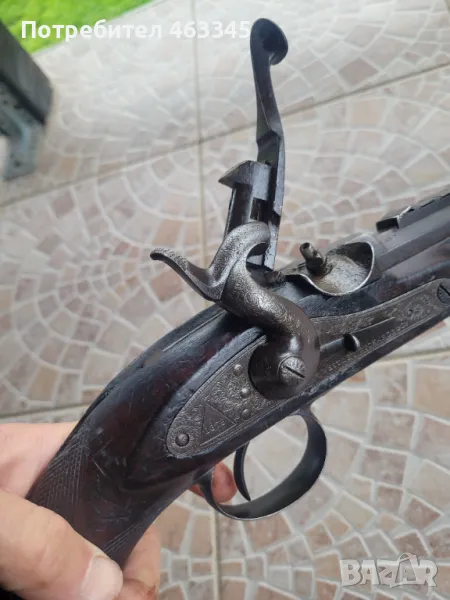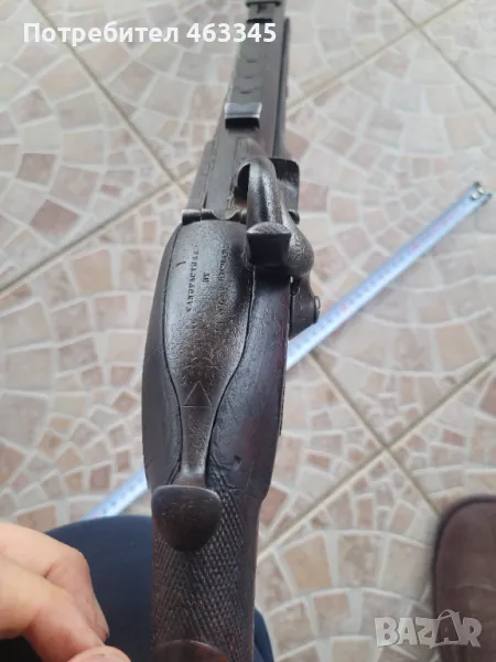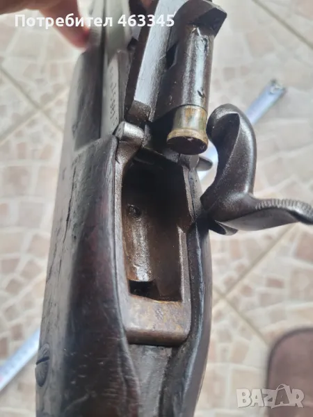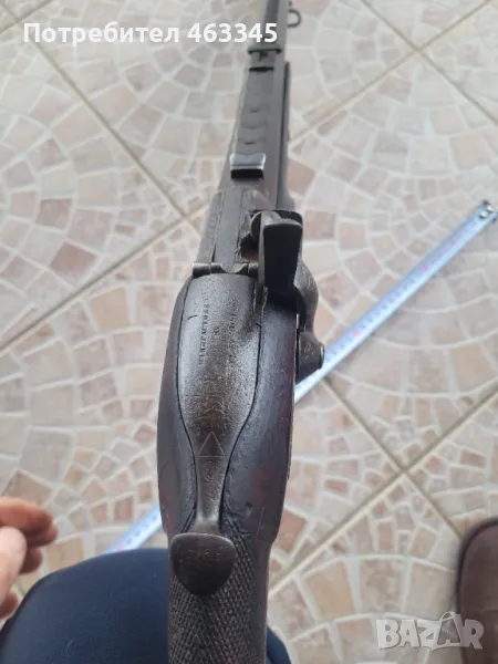 Перфектна артилерийска карабина Уестли Ричардс "Маймунска опашка", Westley Richards "monkey tail". Пушката е от много редките перкусионни системи със задно пълнене. Затворът е падащ. Има уникални мерници, няколко на брой за стрелба на различно разтояние. Дървенията е без дървояд, без забележки. Номера и маркировки налични. Карабината е практически без ръжда, но с много добра патина и доста от оксидацията си е на мястото. Чист пистон. Масивна цев, здрава, английска изработка. Всички механизми работят. Перфектна!