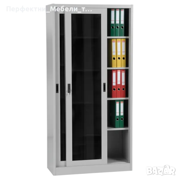 Стилен метален архивен шкаф с плазгащи огледални врати наличен.Доставка до 2 дни с Еконт