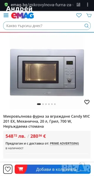 Микровълнова с грил за вграждане Candy → Обява 49742750