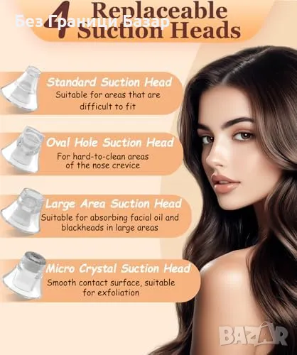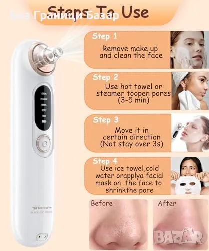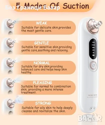 Нов уред лице Вакуум за черни точки – 5 режима, 4 накрайника, зарядна стойка