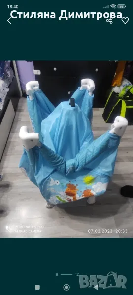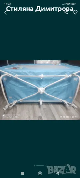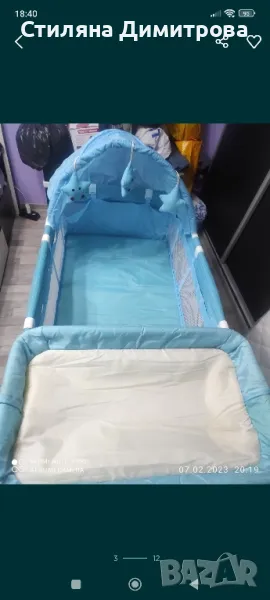 Кошарката е пробвана,но и двете ми деца не искаха да спят в нея,а при мен. Повивалника е това,което е ползвано най-много. Има забележка в тръбите,които се сглобяват за люлеене(надрани),снимала съм ги. Кошарката върви заедно с матрака. Мога да изпратя с Еконт или Спиди. Цената не се коментира!