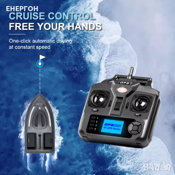 -LCD екранът на дистанционното управление показва мощността на лодката и