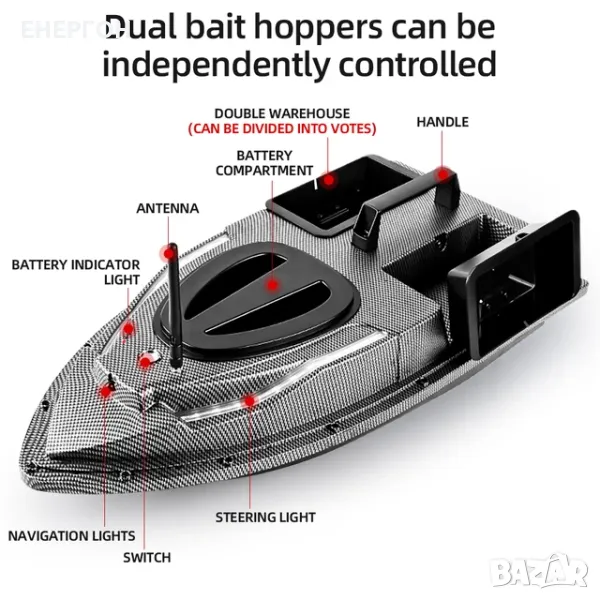 Можете да контролирате бункера с фиксирана точка по желание, което е особено важно в риболовна среда с обширни води!