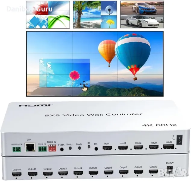 4K@60Hz 5входа x9 изхода HDMI контролер за видео стена, с функция pip и multiviewer, Поддръжка на 4-посочен hdmi/1-посочен DP вход, 10-посочен hdmi изход (2x2 3x3 1x5 1x6 1x9) 9-канален режим на мулти снаждане