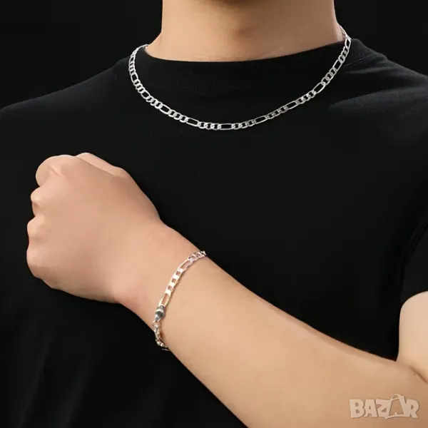Сребърно синджирче и верижка Фигаро → Обява 49744899