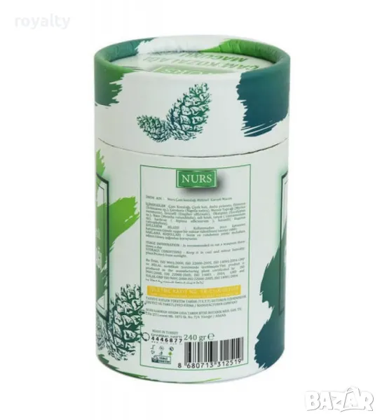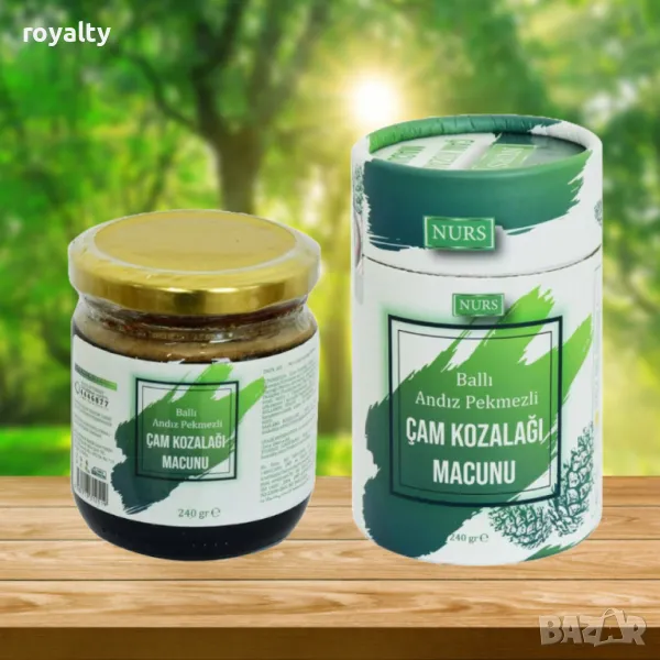 Съставки: паста от борови шишарки, цветен мед, меласа от хвойна, ехинацея, черен кимион, листа от мирта, джинджифил, евкалипт, мента, канела, галангал, карамфил;