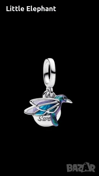Сребърен висящ елемент Пандора,колибри"Животът е сладък"/нов → Обява 49745324
