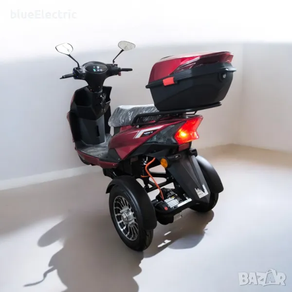 Електрически скутер-триколка Bluelectric Sport 2000W, 60V, 24Ah + Задно задвижване чрез диференциал + Подсилени Предни и задни амортисьори + Аларма + Предни и Задни габарити + LCD дисплей + Предни и задни габарити + Заден Кош