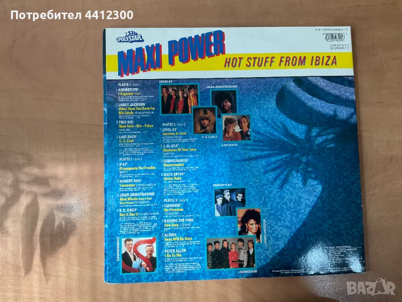 Здравейте, двоен албум на Maxi power- hot stuff from Ibiza - 12 инча. Не нося отговорност за състоянието на плочите, не почиствам плочи, ако имате въпроси, може да ми звънете на посочения номер или да ми напишете съобщение. Отговарям след 18 часа, цените не се коментират, ако не се вземат повече от 10 плочи. Благодаря, че прегледахте обявата ми. Лек и спокоен ден!