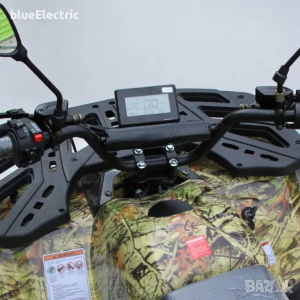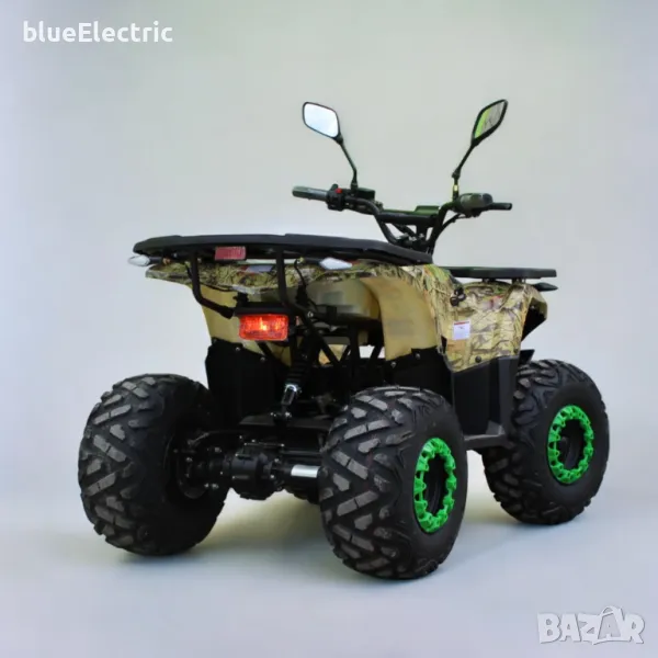 Мощно Eлектрическо ATV | АТВ 2000W blueElectric Green Camo с голяма каса на 150 кубиково бензиново АТВ. 2000W максимална мощност на двигателя, 60V батерия с капацитет 20 амперчаса. Големи 8 инчови джанти, пълна LED светлинна окомплектовка, Голям LCD дисплей с множество показания. 24 месеца гаранция. Родителски контрол с три степени на скоростта!