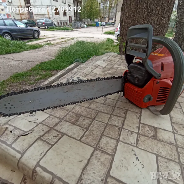 Модела е професионален, 50.1 кубиков двигател с бутон/декомпресор/ и е в идеално състояние. Ползван е само от мен за лични нужди с около 150к.м. нарязани дърва за огрев. Окомплектована с 2 шини, 2 вериги и ключ-отверка за подръжка. Оригинална книжка с инструкции за работа и поддръжка. Фактура. Резервни: Ринг, В.филтър.