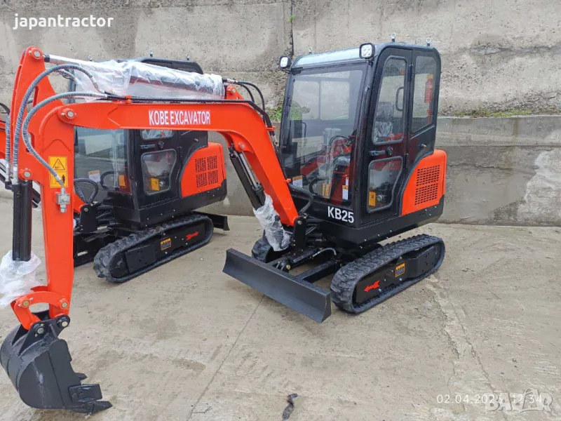 Директен вносител на KOBE KOBELCO 2, 5 тона със джойстици. Чисто нови -налични на склад, двигател Kubota 3 цилиндъра оригинален японски, водно охлаждане. Безплатен транспорт ца цялата страна, кофа 50см, линия за чук и друг инвентар, задвижващи мотори и хидромотор EATON USA обявената цена БЕЗ ДДС.