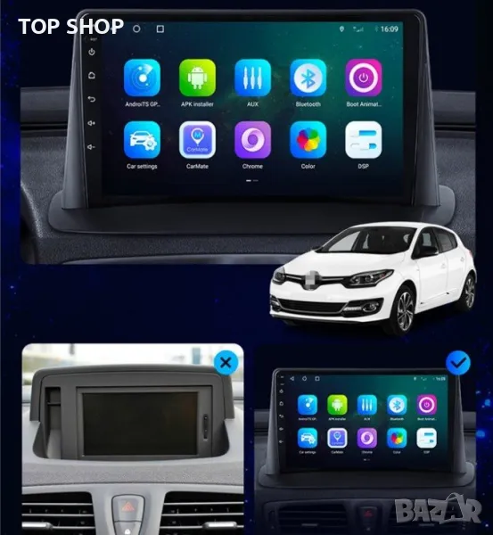 Мултимедия, Двоен дин, за Renault Megane 3, Навигация, плеър, Android, Рено Меган 3, 2009-2014