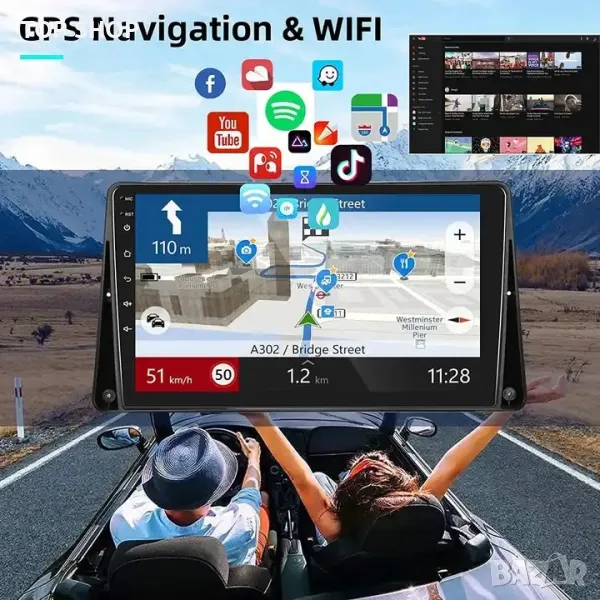 Wi-Fi интернет, новият Андроид, Bluetooth за разговори и музика, USB входове за флашка и зареждане на устройства, GPS навигация, теми за вид на меню, еквалайзер за настройка на звука, бърза реална RAM памет от ново поколение. ТОП дизайн!