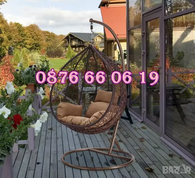 тип гнездо с възглавници е изработена от здрава конструкция от метал и PVC ратан. Лесно преносима и компактна. Подходяща за почивка в градината или на терасата. Люлката е уникално предложение за релакс и отмора, а двата броя меки възглавници допринасят за перфектния комфорт.