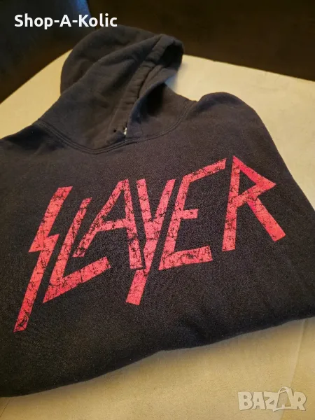 Оригинален ватиран суетшърт с качулка на легендарната американска метъл банда Слейър. Само за ценители и фенове на групата и trash metal музиката. Унисекс Размер: XL, Made in Honduras. Моля, последвайте ни и в Instagram: Shop-A-Kolic