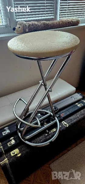 Здравейте,продавам този страхотен стол за колеги музиканти, китаристи които свирят седнали. Стола е нов, височината му е абсолютно съъбразена със това ако имате педали или процесор в краката си да имате пълен комфорт да ги настъпвате и работите спокойно. На последната снимка може да се види как е усилен с допълнителна тръба стола за стабилност и здравина. Красив, компактен и много удобен стол.