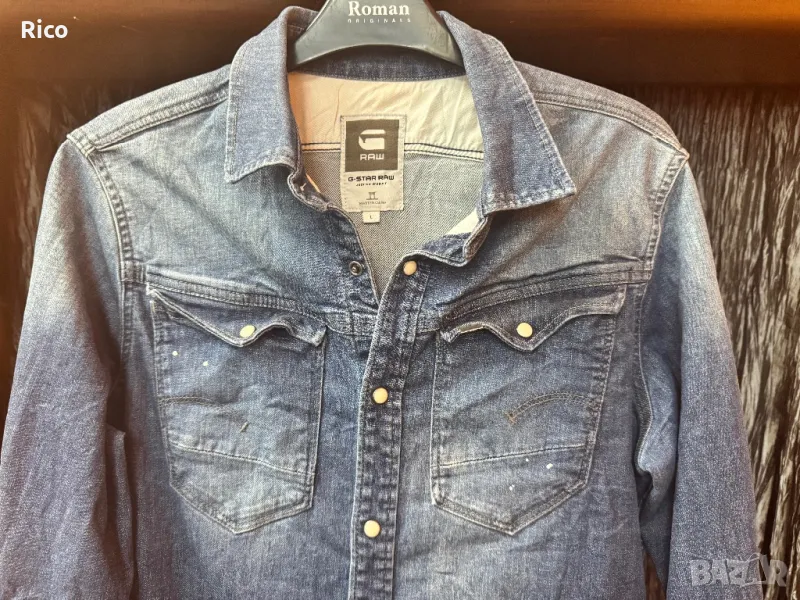 Продавам оригинална мъжка риза на G Star! Като нова! Размер по етикет Л, но е леко вталена става и за мен! Има еластан!