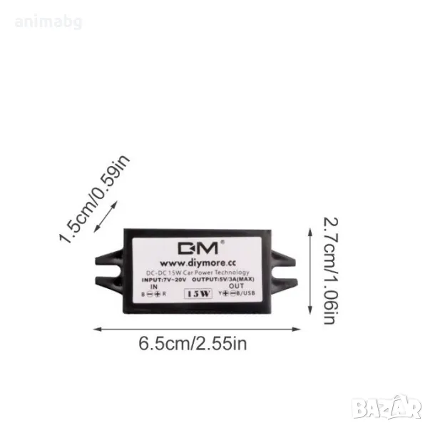 ANIMABG Конвертор от 12V на 5V, USB Type-C изход, 3A