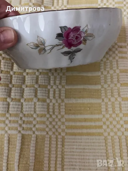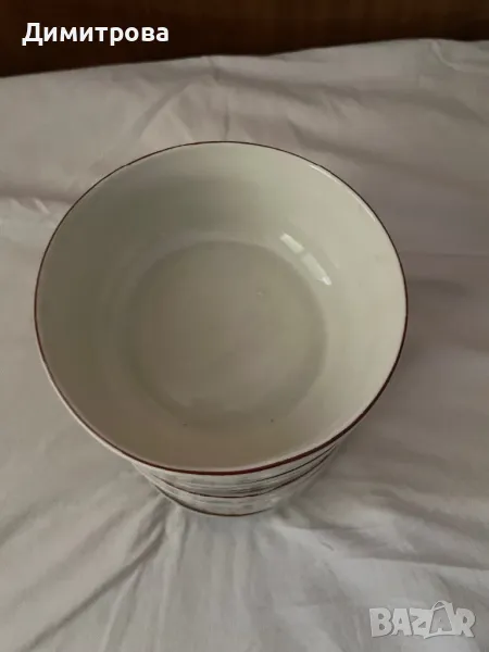 Порцеланови купички със сива роза и тъмночервен кант - 7 бр.