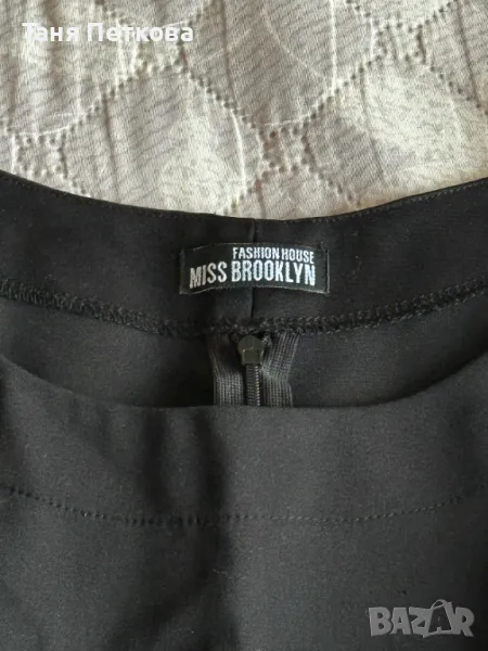Изчистена и стилна дамска черна рокля.Българско производство на модна к ща "Miss Brooklyn ".Размер L,закопчава се с цип на гърба.Роклята е подходяща за всякакви поводи и събития.Обличана само два пъти по повод.Има.лека еластичност.