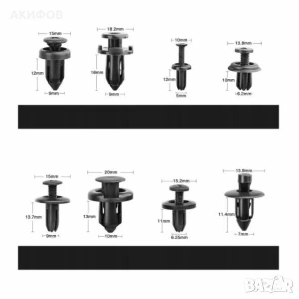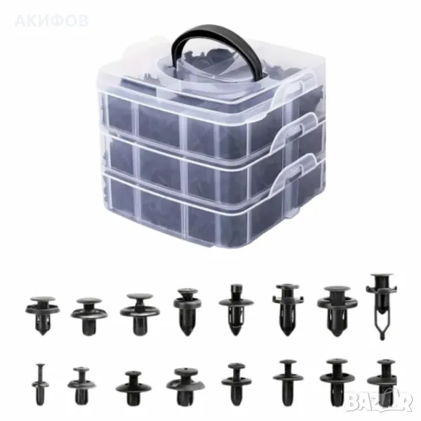 Комплект от 620 броя клипсове за автомобил в кутия– пластмасови закопчалки за врати, брони и бампер → Обява 49749010
