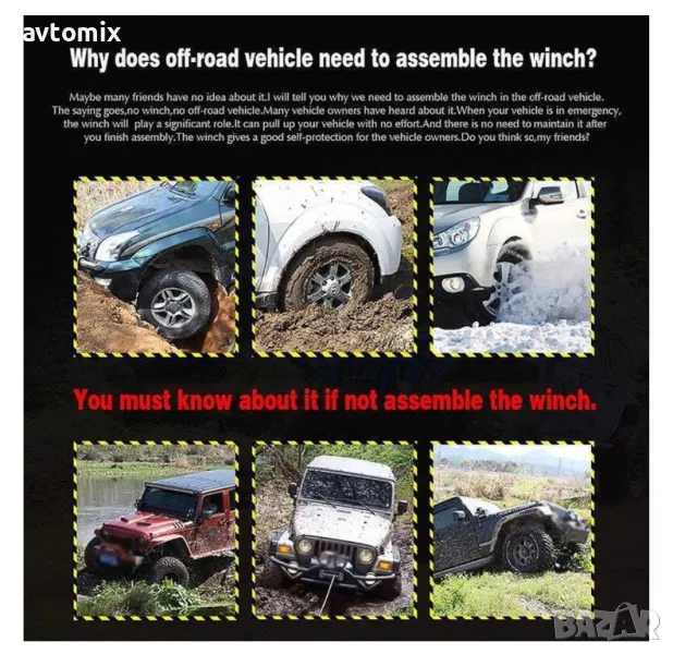 Електрическа лебедка за теглене на автомобили, джипове, пътна помощ и други;