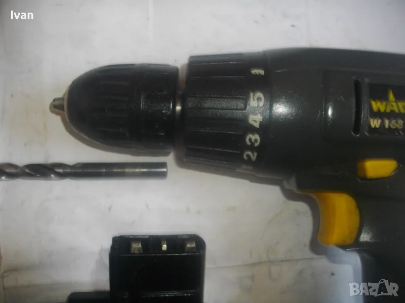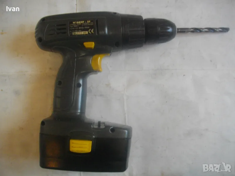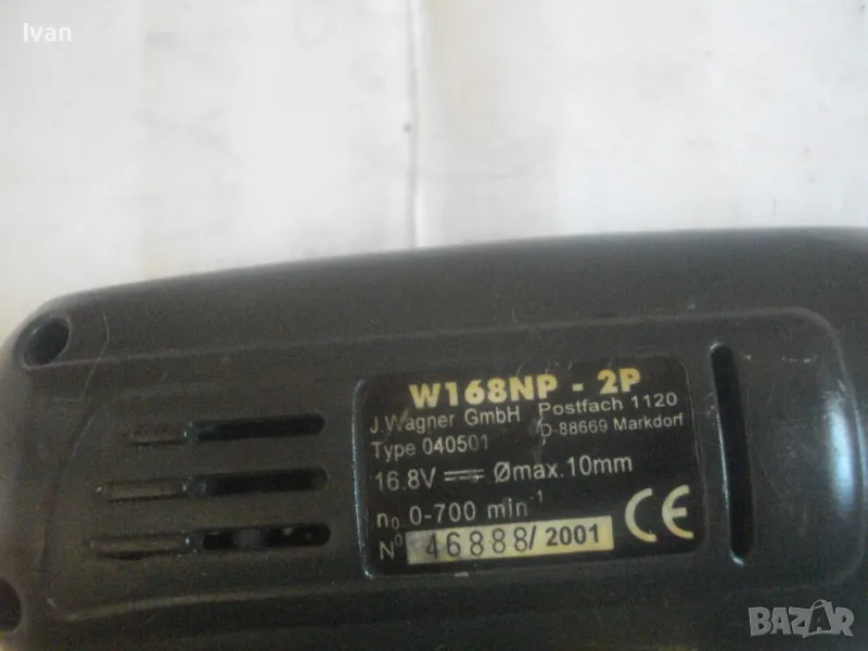 Описание на винтоверт профи 16,8 волта-Wagner W 168NP - немски професионален боди тяло заедно с оригинална батерия.16,8 волтова силна и мощна акумулаторна бармашина,винтоверт-дрелка,професионален модел на Вагнер.Машината е с метални части вътре,издържащи на по-големи натоварвания.Немско оригинално производство.Марка и модел-Wagner W168NP-2P.Много запазен външен вид и отлично техническо състояние.Работи много добре-силно,мощно и ефективно при работа.Мощност на мотора-16,8 волта,обороти-0-700 в минута,5 степени на натягане,отделно функция пробиване.Плавен старт на спусъка-шпиндел.Реверс смяна посока.Патронник-самонатягащ до 10 мм,оригинален на марката,универсален.Батерия-оригинална немска на марката,16,8 волтова,никел-кадмий елементи.Състояние-неизвестно.На тази цена винтоверта е без зарядно.