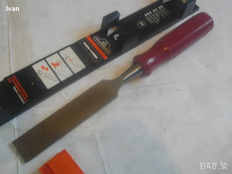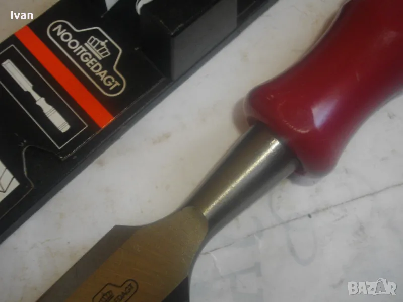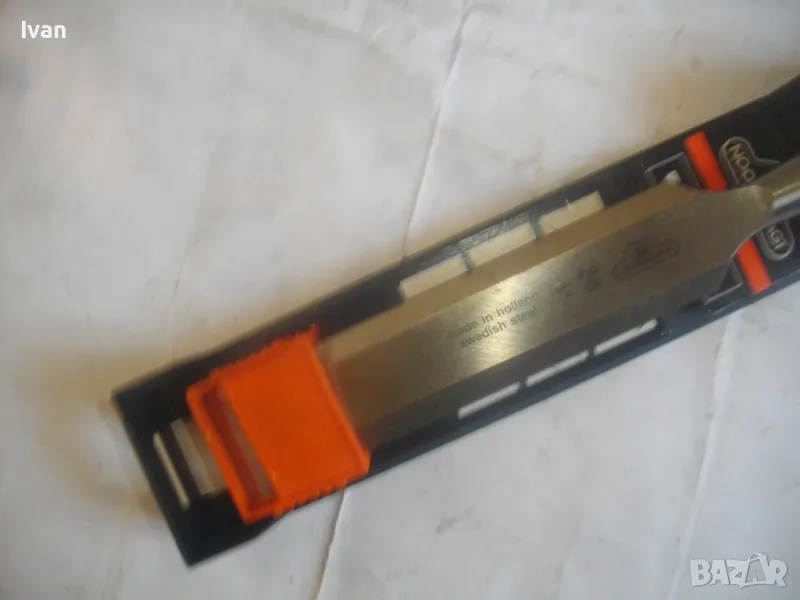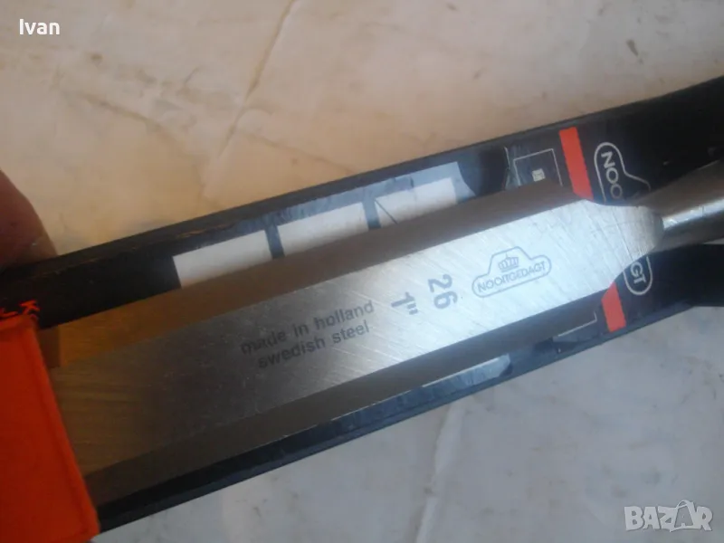 ОПИСАНИЕ на ново дърводелско длето размер 26 мм - 1 цол/инч. Цена 99 лв. Професионално. Производство - оригинално Холандия - Made in HOLLAND. NOOITCEDACT. Лого на марката - корона. Маркировки други - Sweisch Steel. Тип острие - право. Оригинална холандска поставка - опаковка. Длетото е ударно. Дължина - 275 мм.