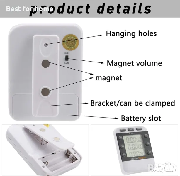 Кухненски таймер, Преносим цифров таймер, Таймер за готвене с магнитен гръб, Стойка, Връзка.