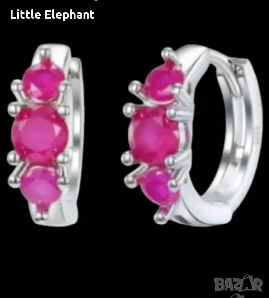 Сребърни обеци халки,бейсик,pink cristals/нови → Обява 49751012